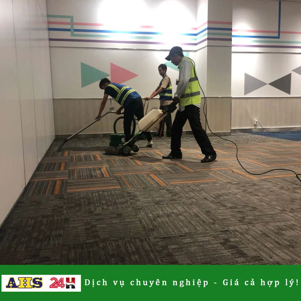 AHS 24H cung cấp dịch vụ giặt thảm định kỳ giúp loại bỏ bụi bẩn, vi khuẩn, nấm mốc và các chất gây dị ứng tích tụ lâu ngày — tạo môi trường làm việc an toàn