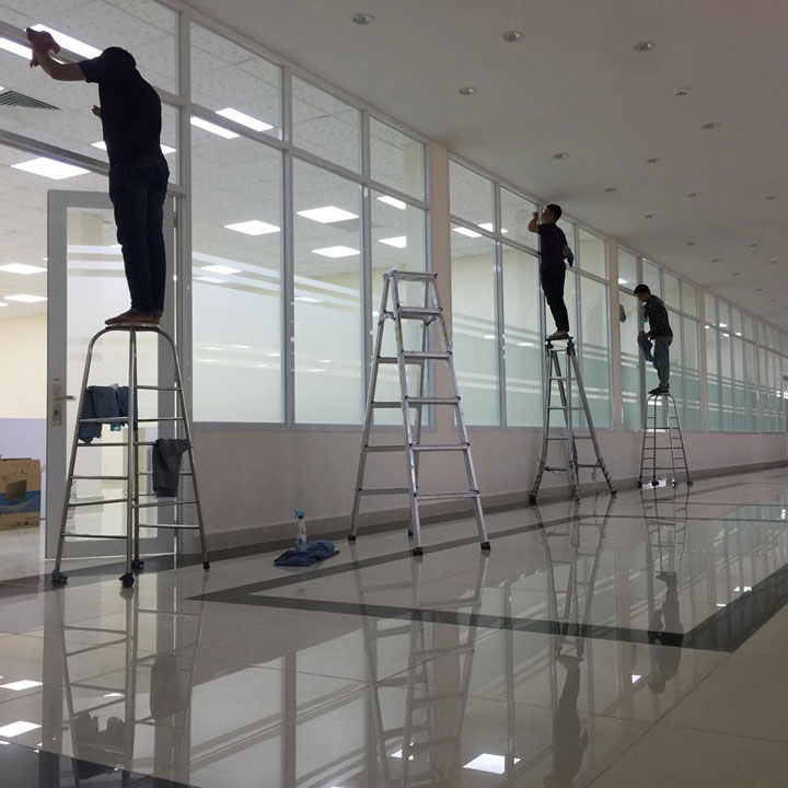 Bao gồm vệ sinh cửa kính, vách kính, mặt dựng kính cao tầng và các bề mặt kính nội thất. Dịch vụ giúp kính sáng bóng, thoáng đãng, tăng cường ánh sáng tự nhiên và tạo ấn tượng chuyên nghiệp, hiện đại cho văn phòng, tòa nhà, trung tâm thương mại hoặc khu dân cư.